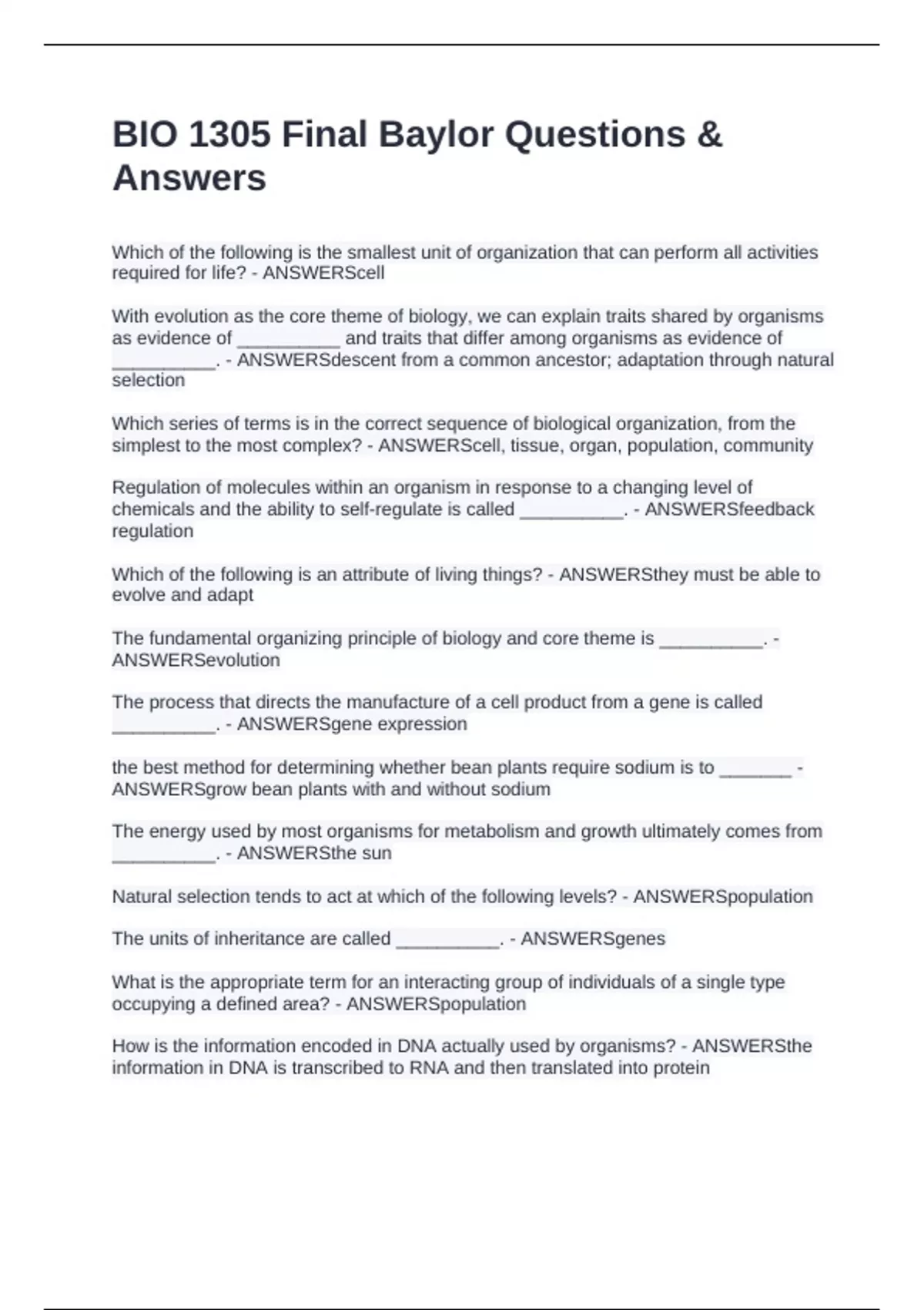 Natural selection tends to act at which of the following levels? - ANSWERSpopulation