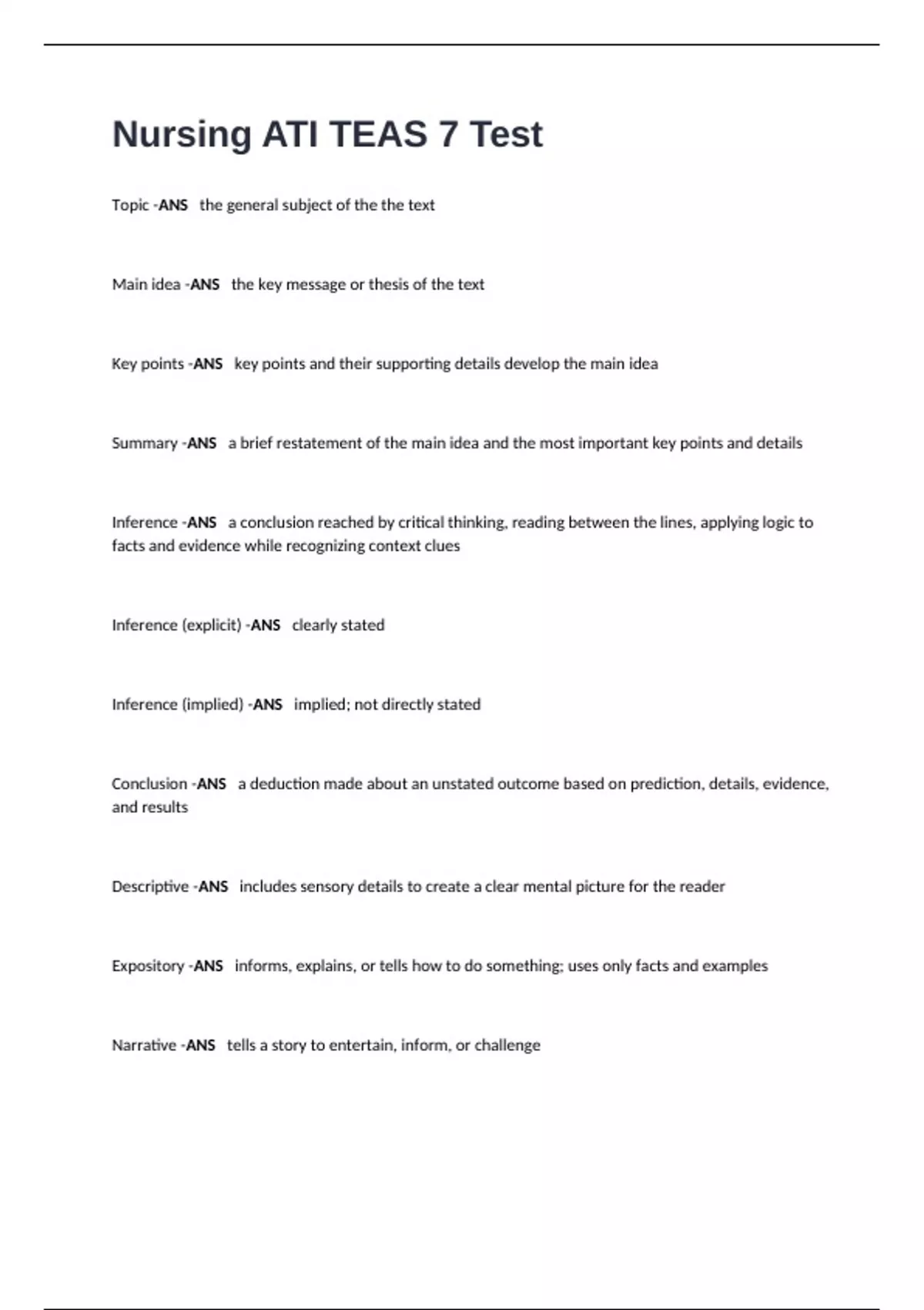 Descriptive -ANS includes sensory details to create a clear mental picture for the reader