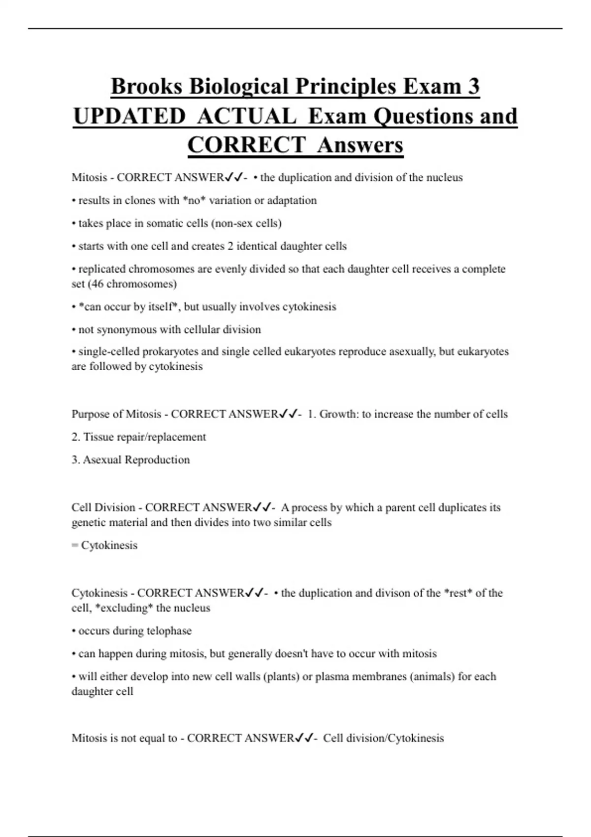 Mitosis is not equal to - CORRECT ANSWER✔✔- Cell division/Cytokinesis