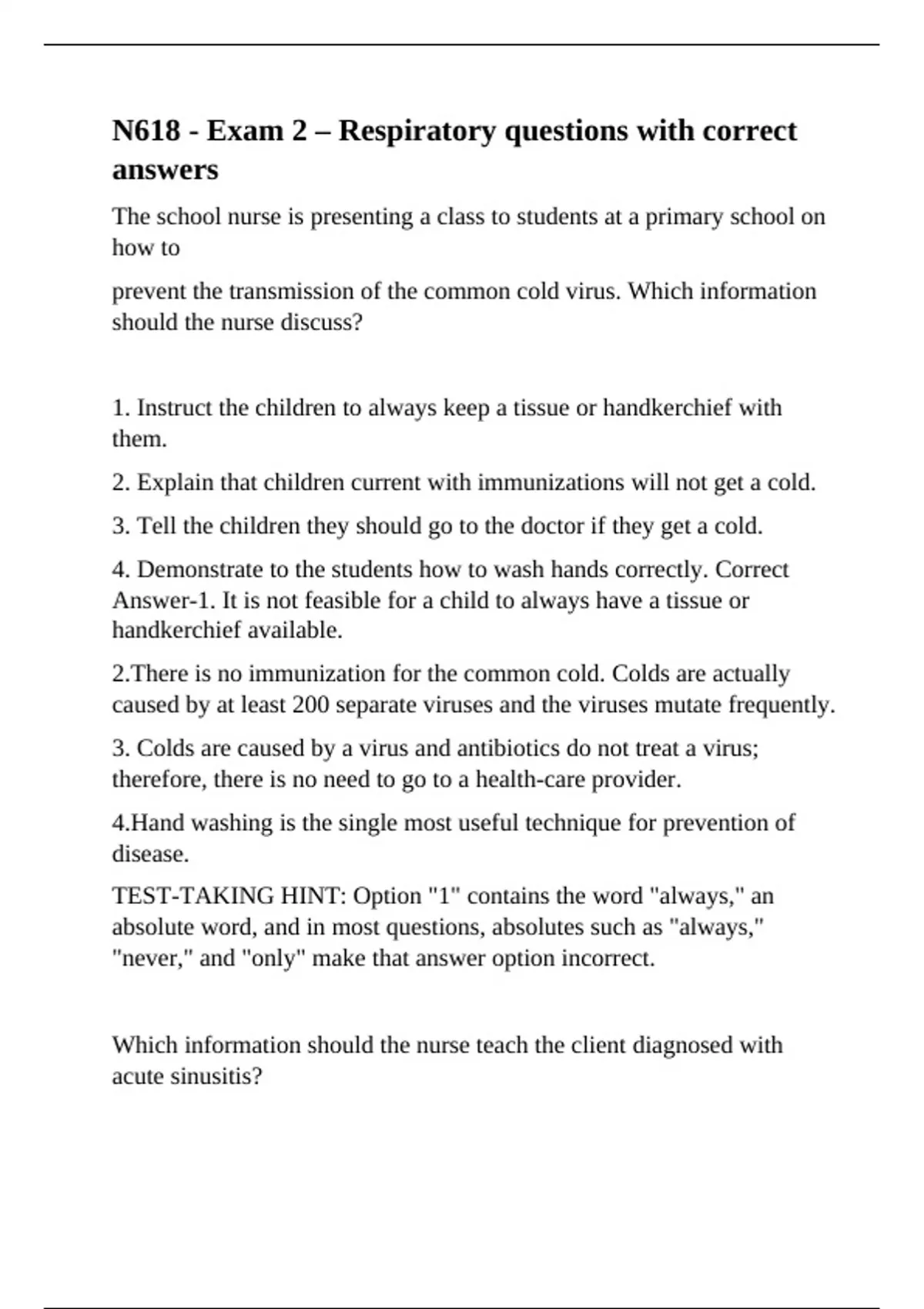 N618 - Exam 2 – Respiratory questions with correct