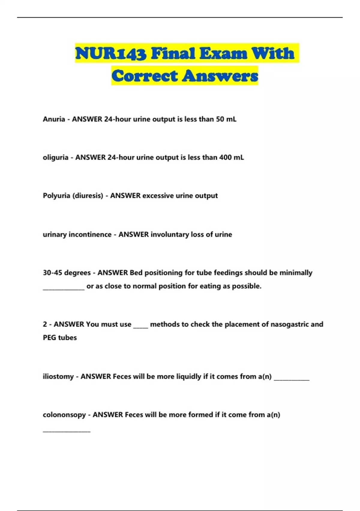 NUR143 Final Exam With Correct Answers...