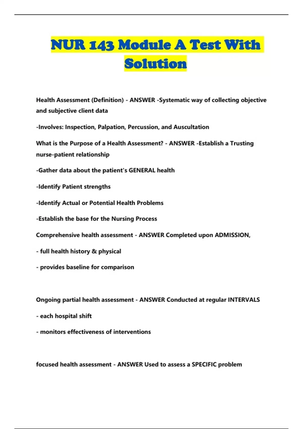 What is the Purpose of a Health Assessment? - ANSWER -Establish a Trusting