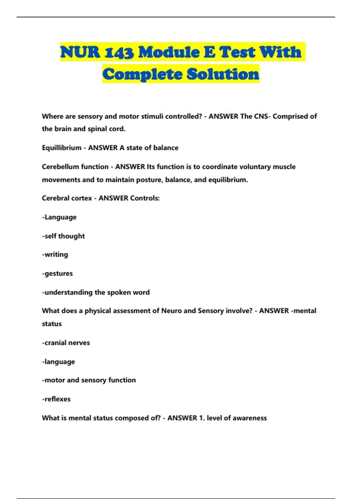 What is mental status composed of? - ANSWER 1. level of awareness