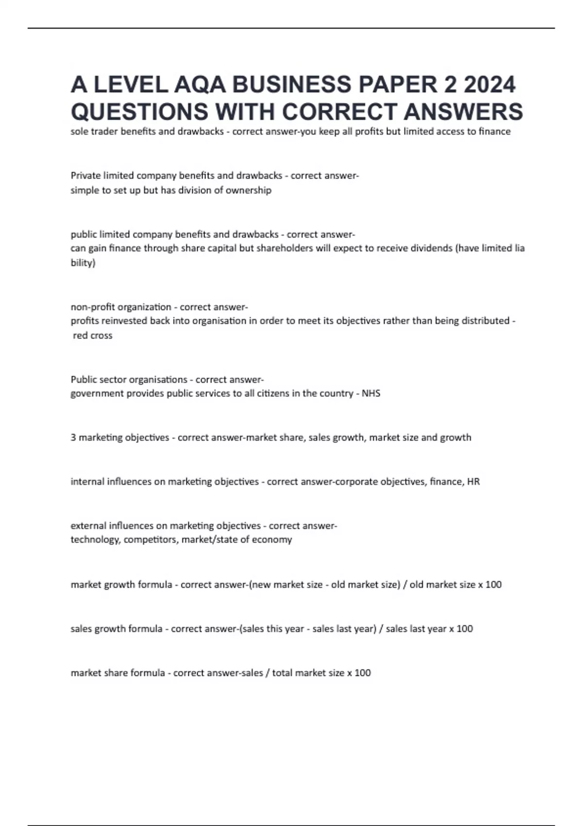 A LEVEL AQA BUSINESS PAPER 2 2024