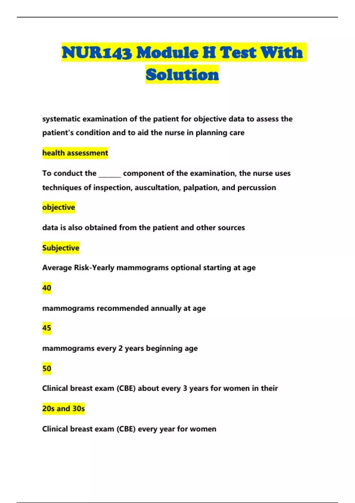 NUR143 Module H Test With