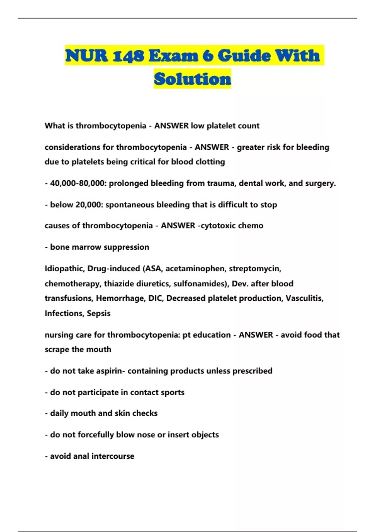 nursing care for thrombocytopenia: pt education - ANSWER - avoid food that