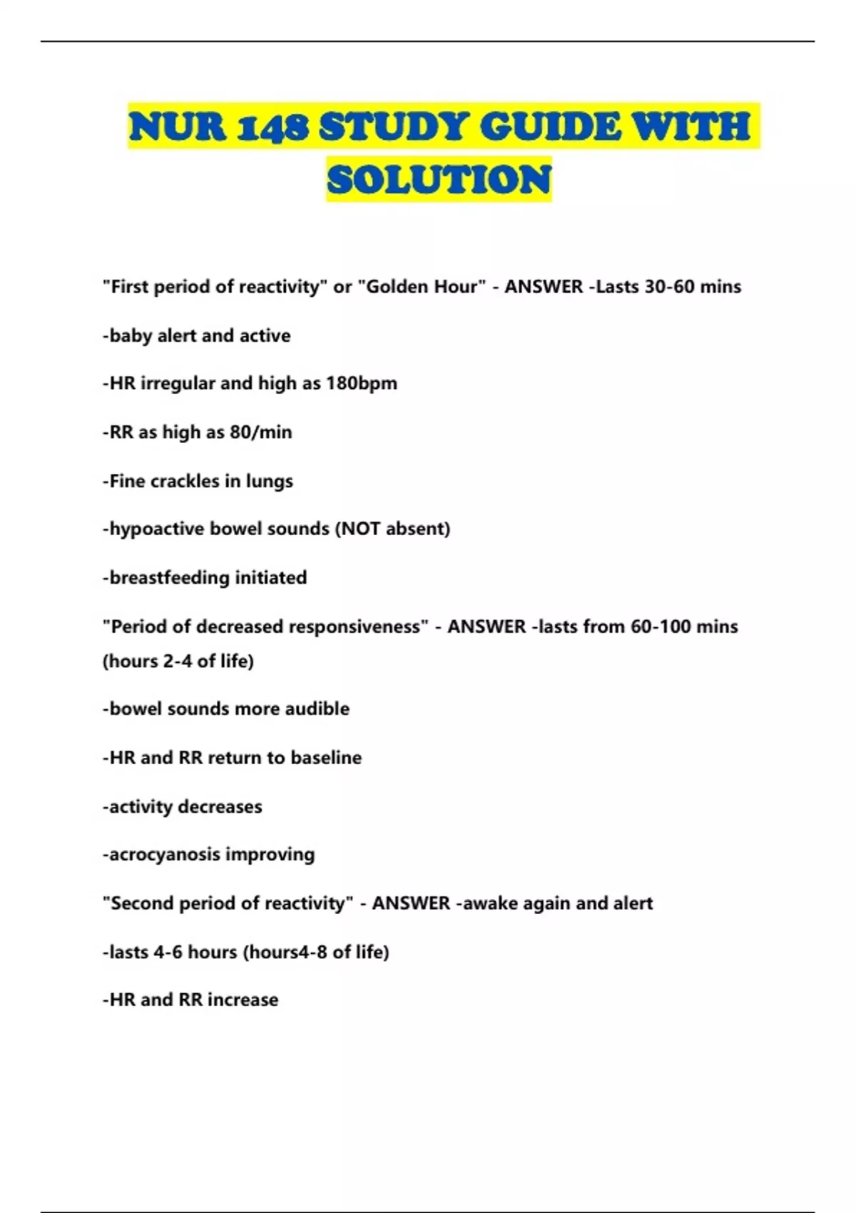NUR 148 STUDY GUIDE WITH SOLUTION