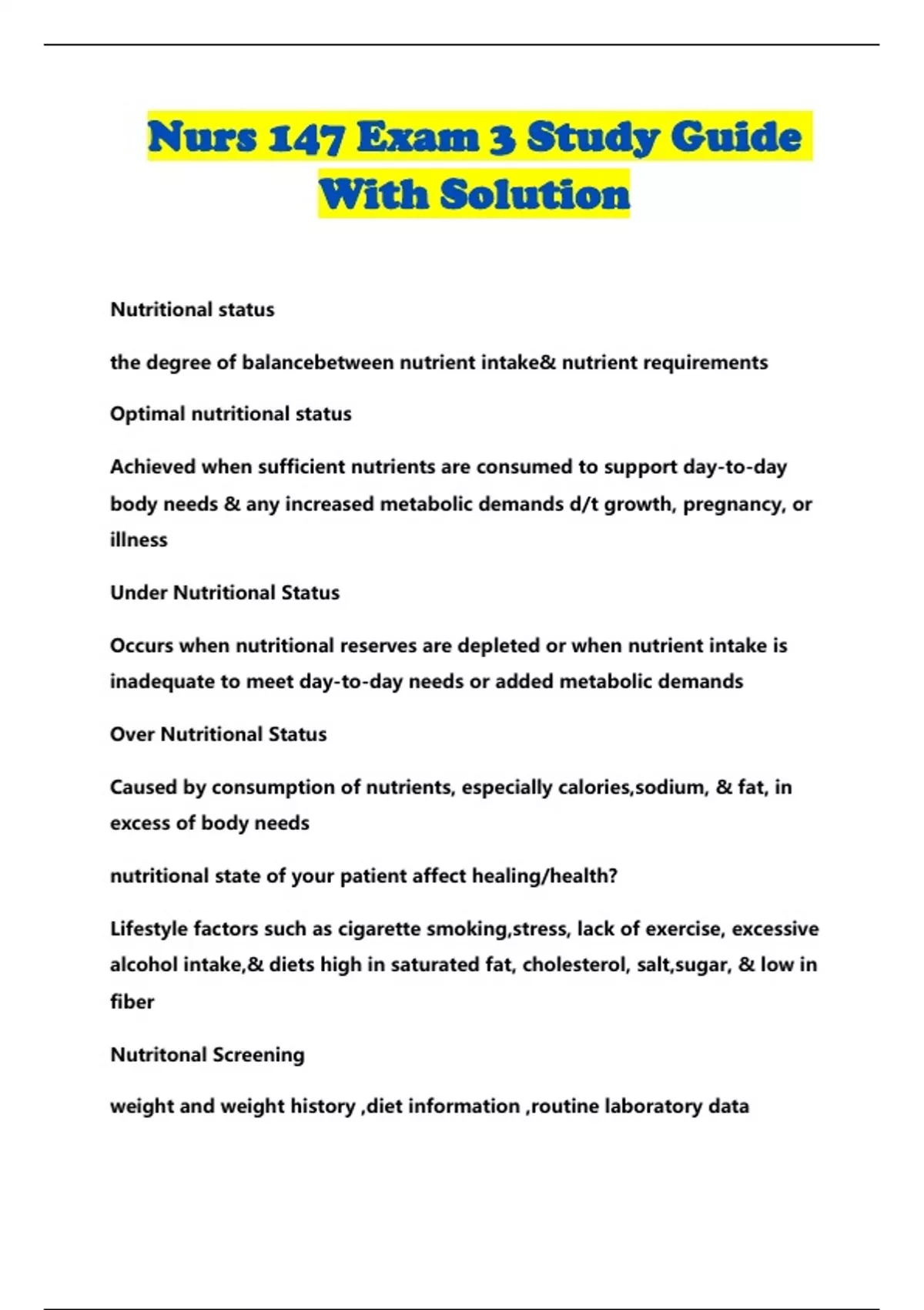 Nurs 147 Exam 3 Study Guide