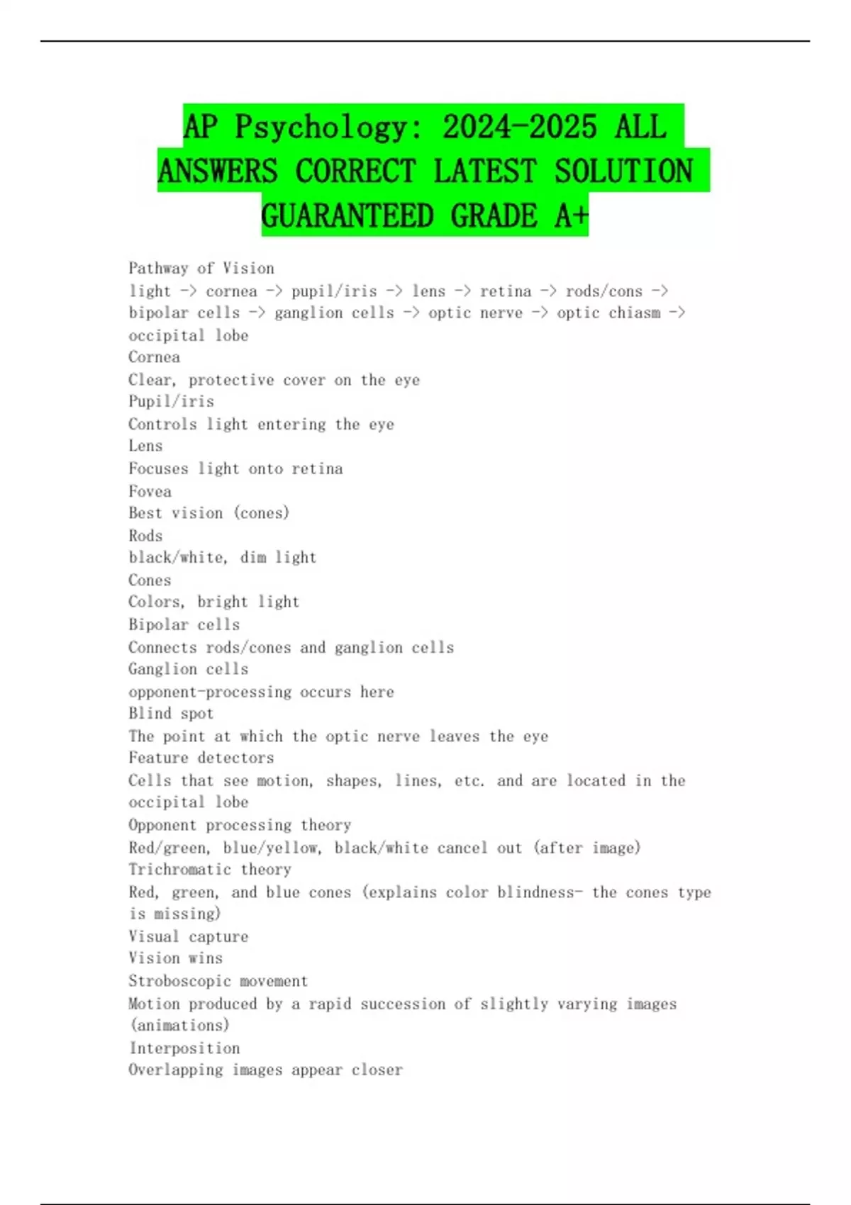 ANSWERS CORRECT LATEST SOLUTION