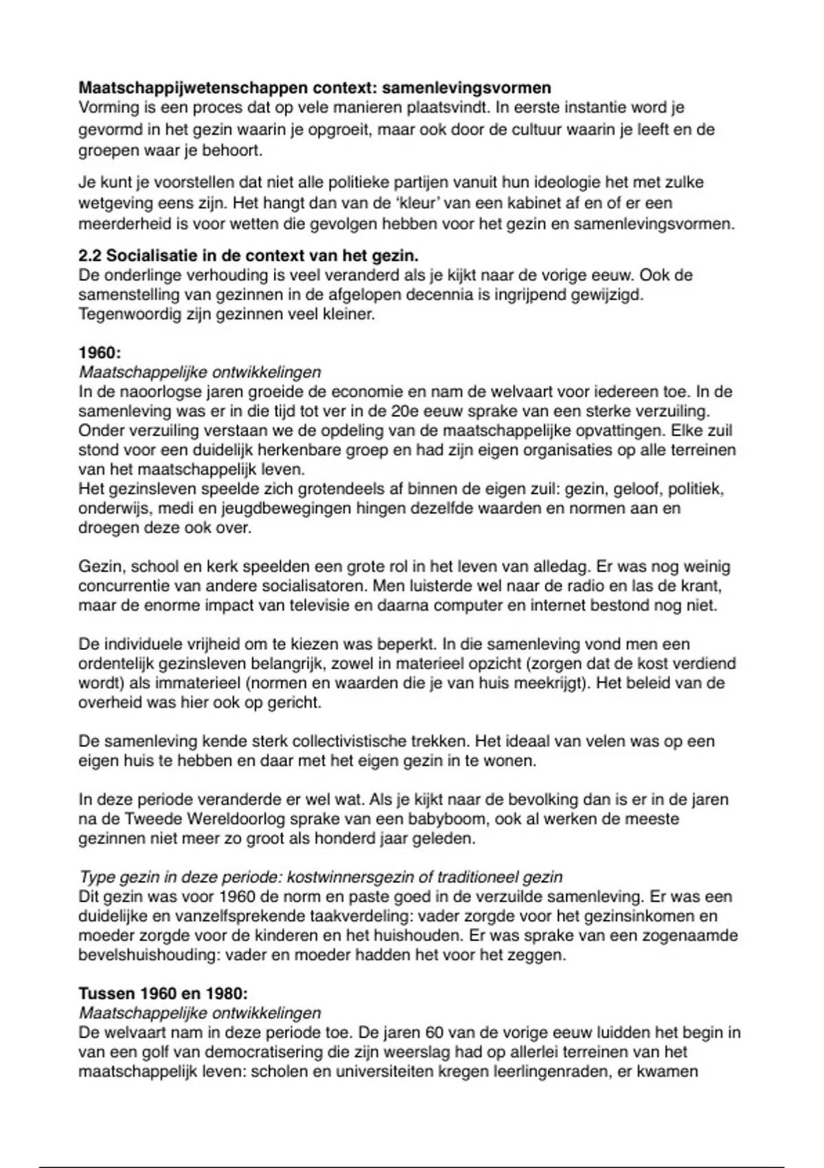 wordt) als immaterieel (normen en waarden die je van huis meekrijgt). Het beleid van de