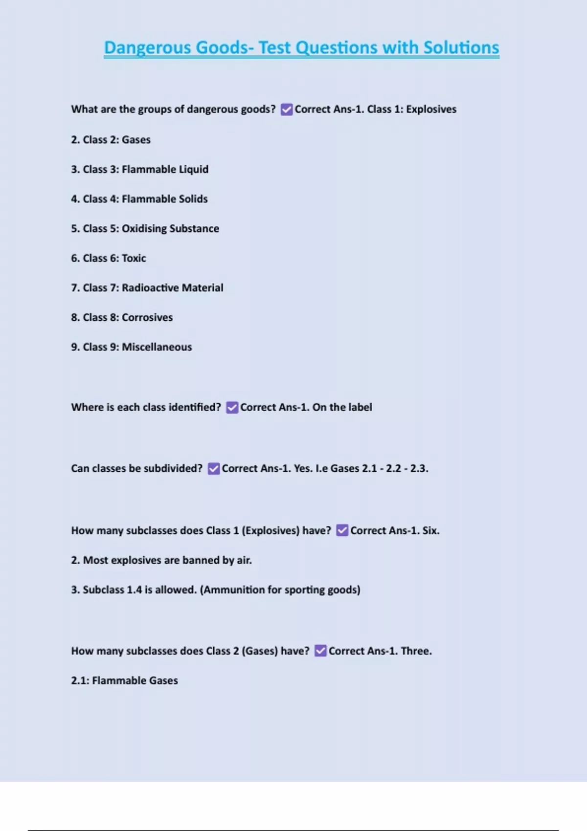 Can classes be subdivided? Correct Ans-1. Yes. I.e Gases 2.1 - 2.2 - 2.3.