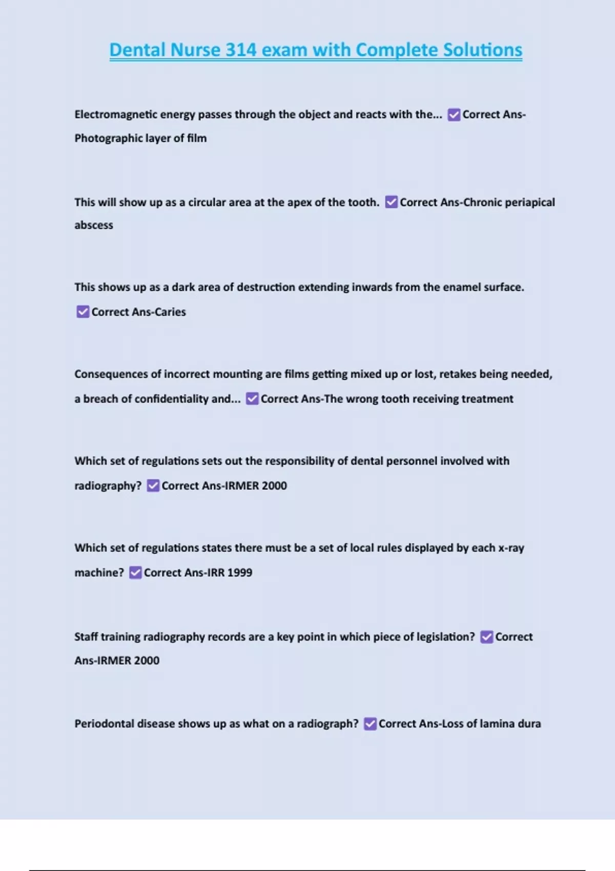 , Dental Nurse 314 exam with Complete Solutions