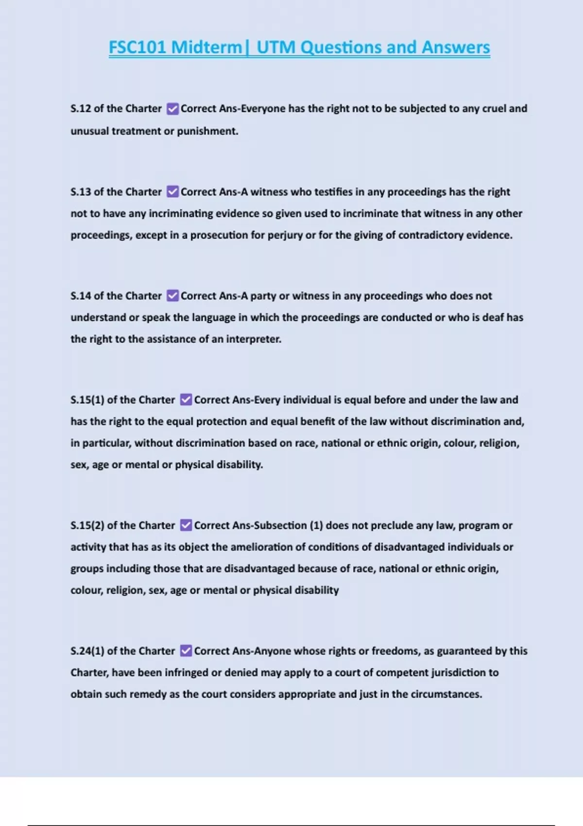 S.12 of the Charter Correct Ans-Everyone has the right not to be subjected to any cruel and