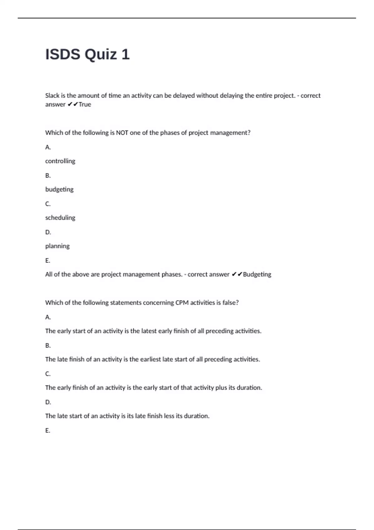 All of the above are project management phases. - correct answer ✔✔Budgeting