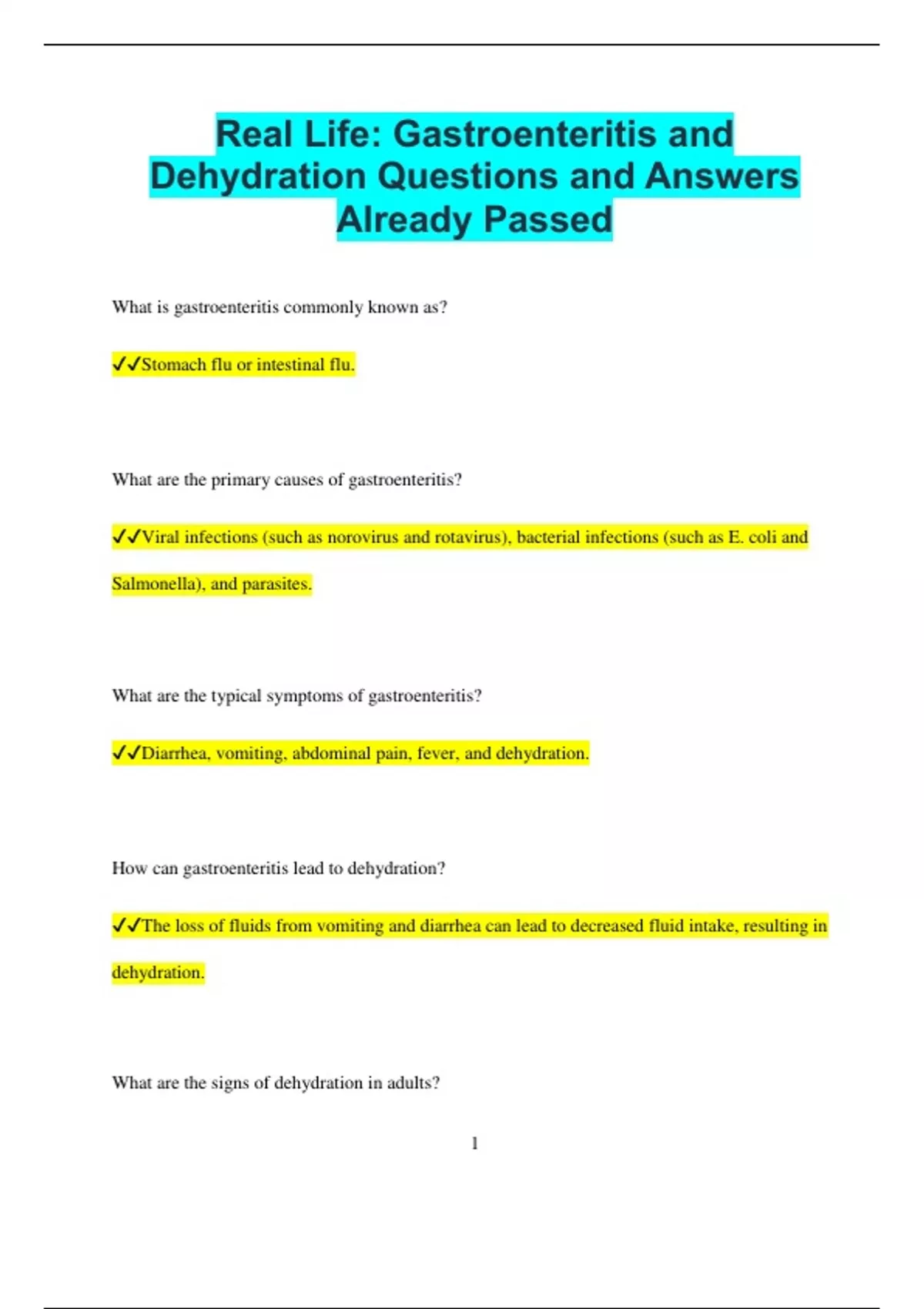 Real Life: Gastroenteritis and Dehydration Questions and Answers Already Passed