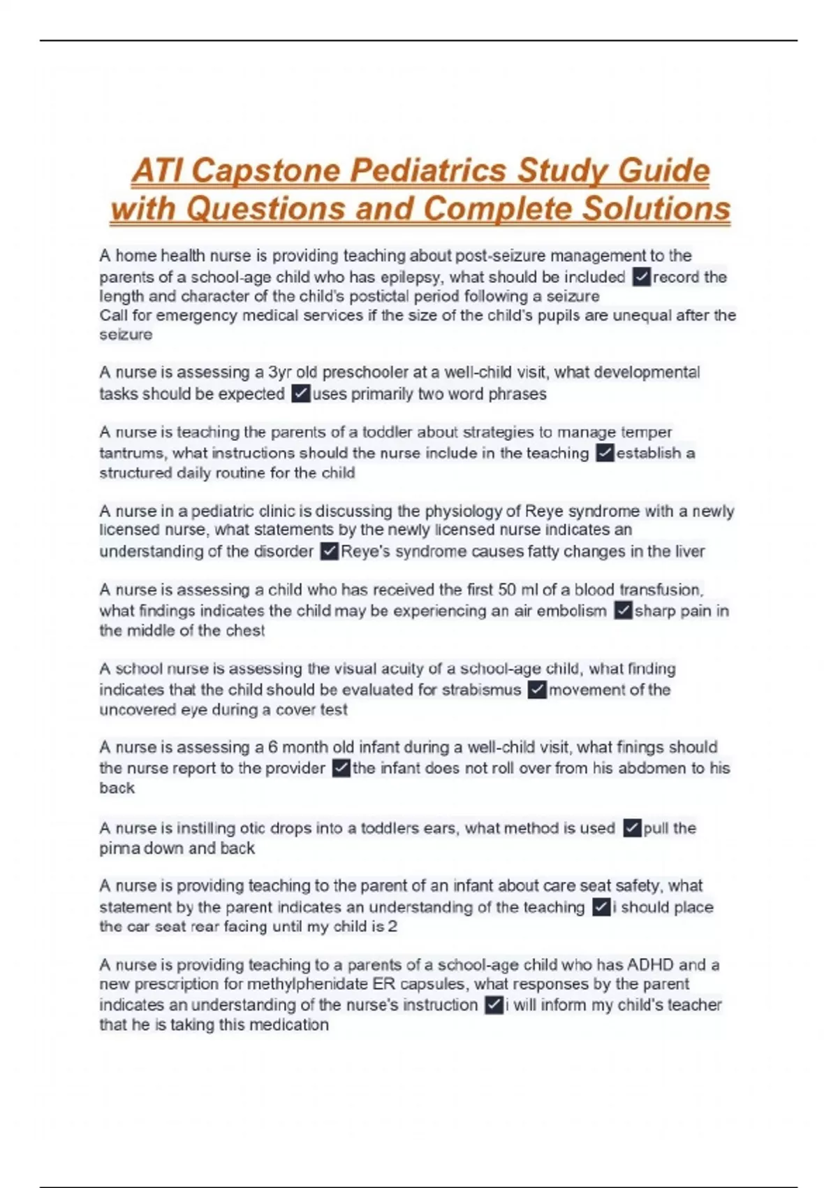 ATI Capstone Pediatrics Study Guide with Questions and Complete Solutions
