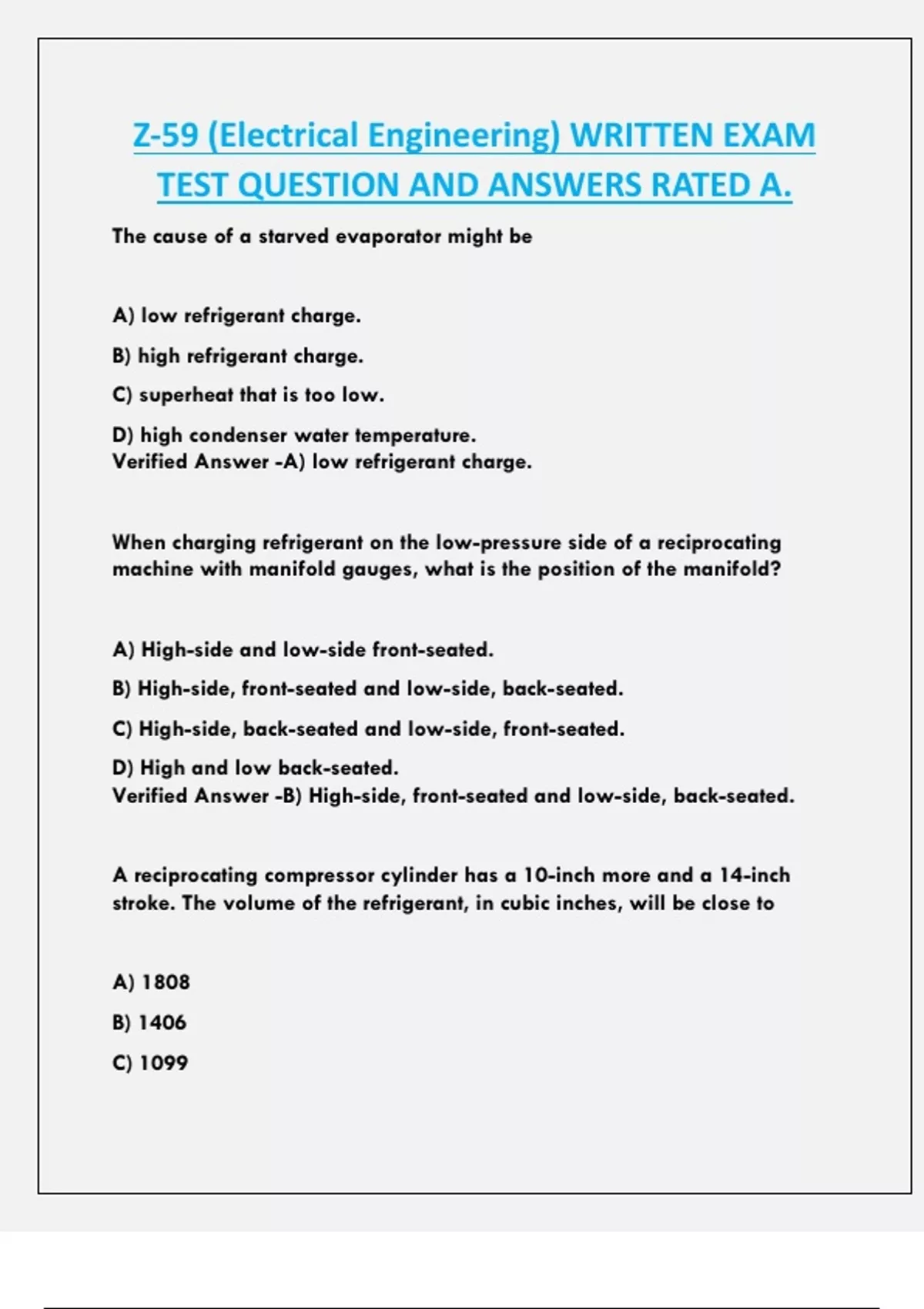 TEST QUESTION AND ANSWERS RATED A.