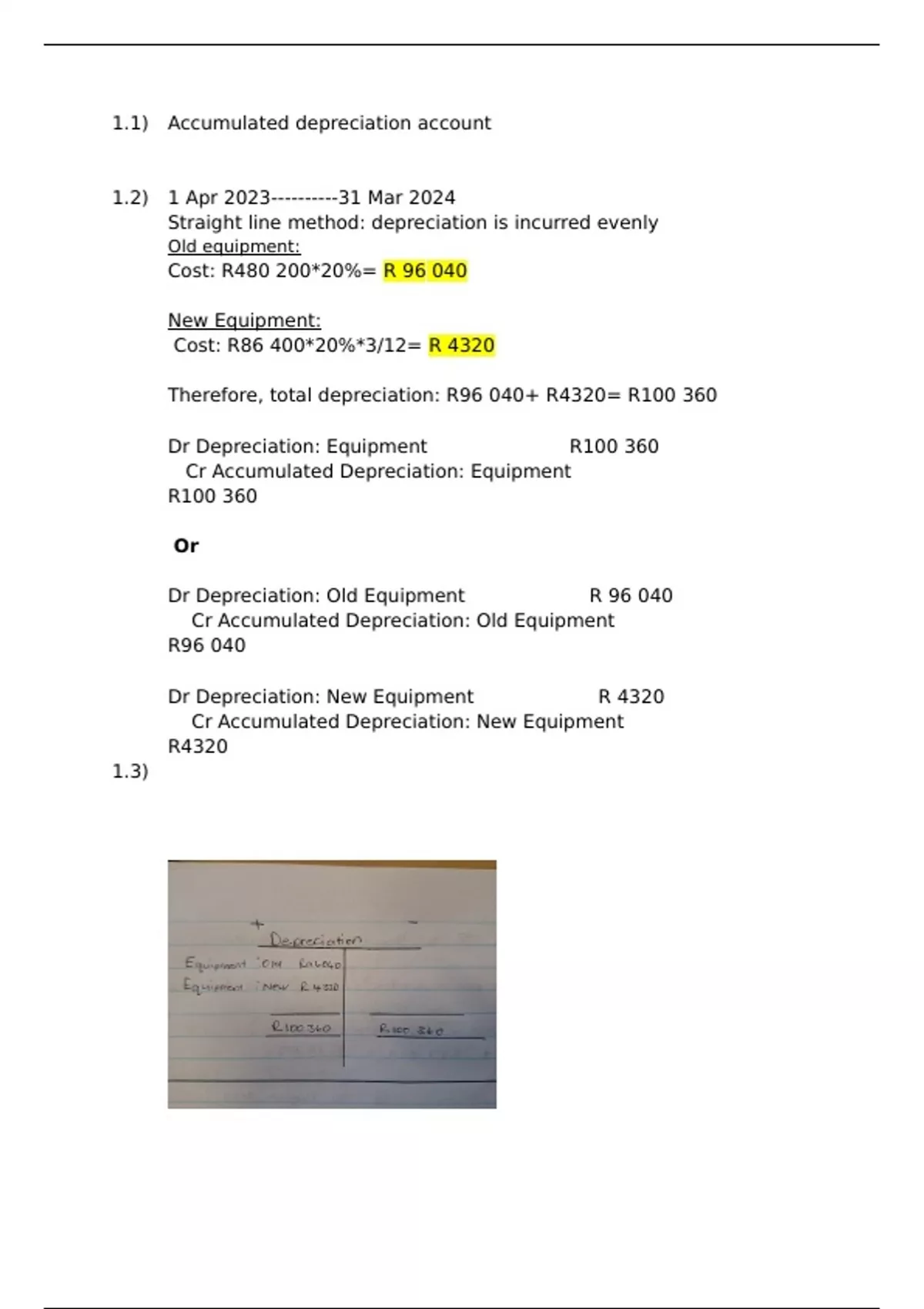 Therefore, total depreciation: R96 040+ R4320= R100 360
