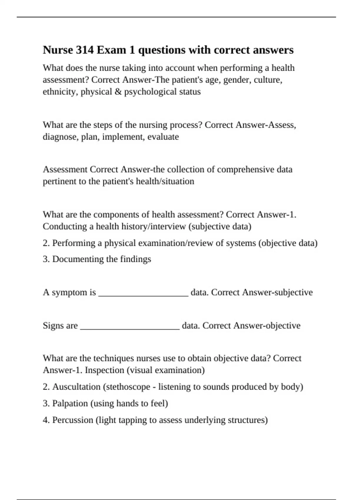 Assessment Correct Answer-the collection of comprehensive data