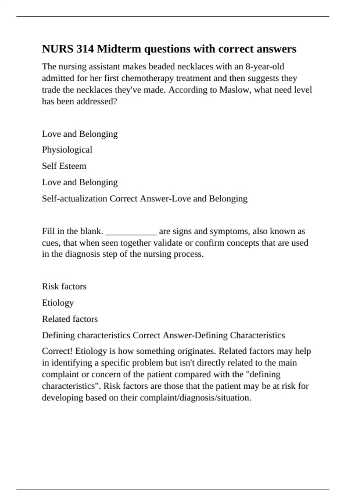 Defining characteristics Correct Answer-Defining Characteristics