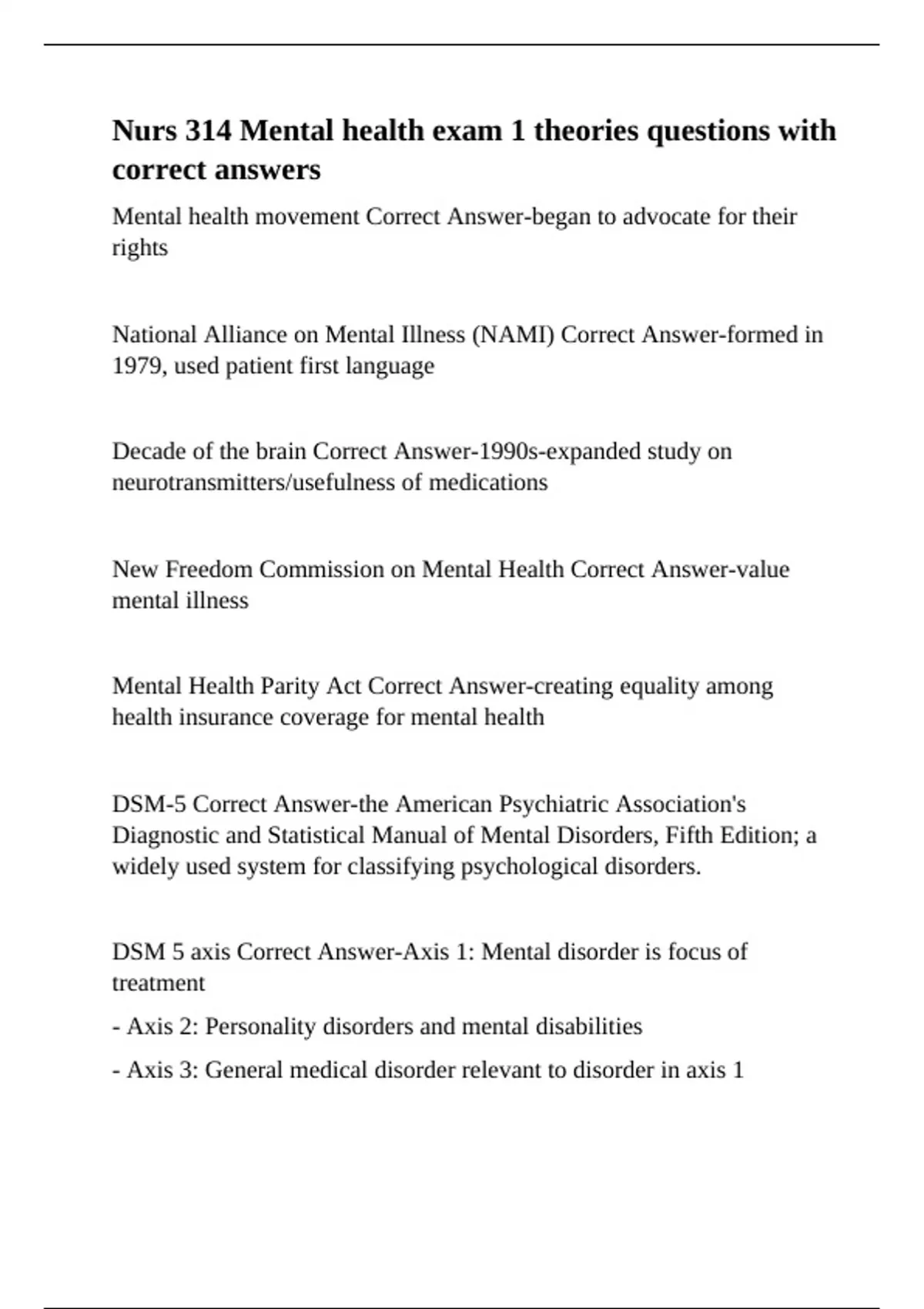DSM 5 axis Correct Answer-Axis 1: Mental disorder is focus of