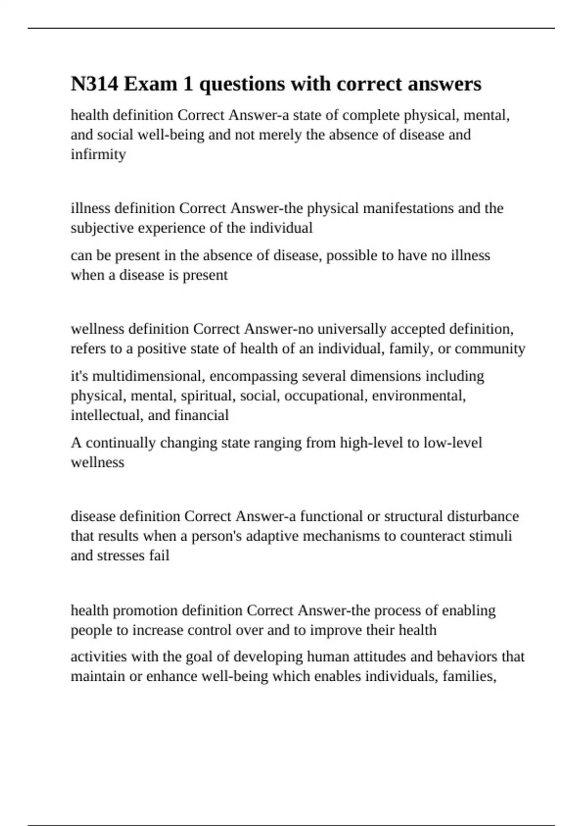 health definition Correct Answer-a state of complete physical, mental,