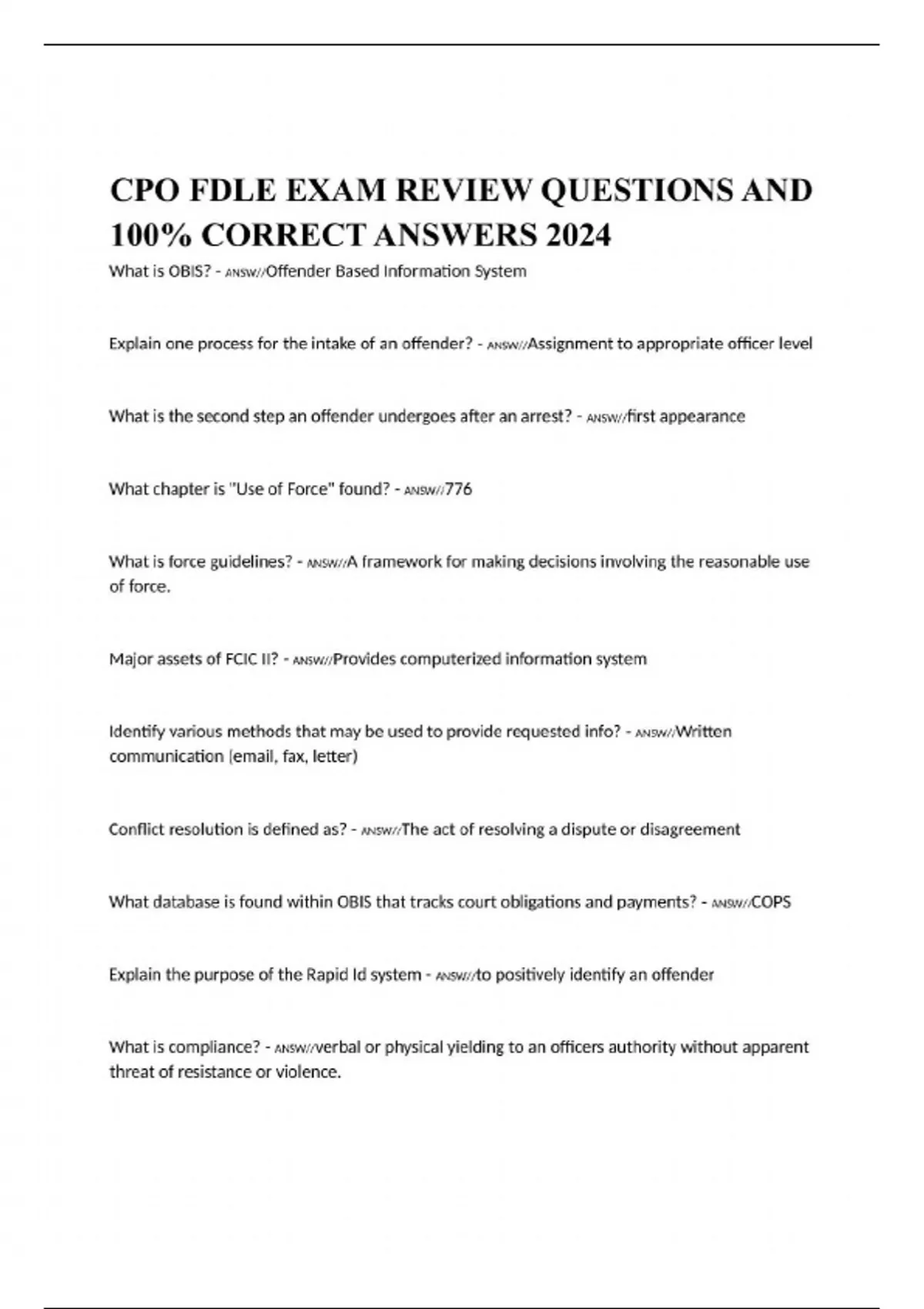 cpo fdle exam review questions and 100 correct an
