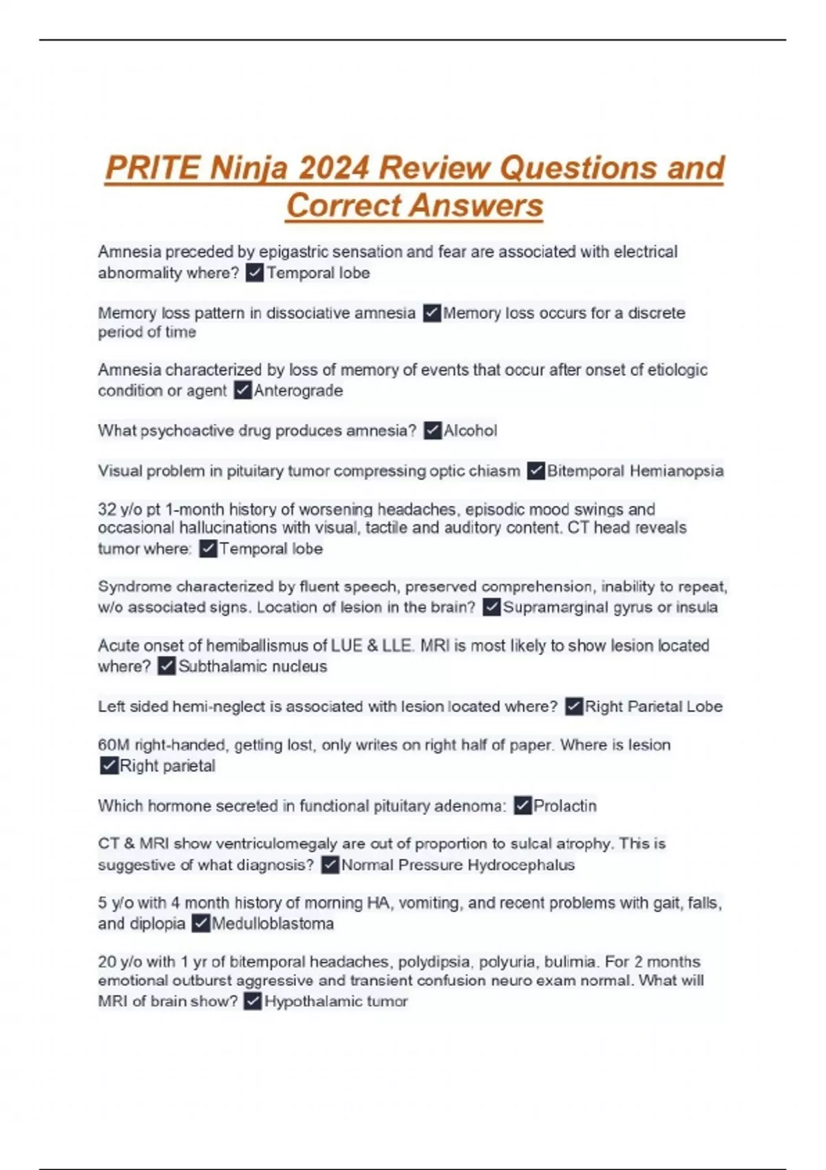 PRITE Ninja 2024 Review Questions and Correct Answers