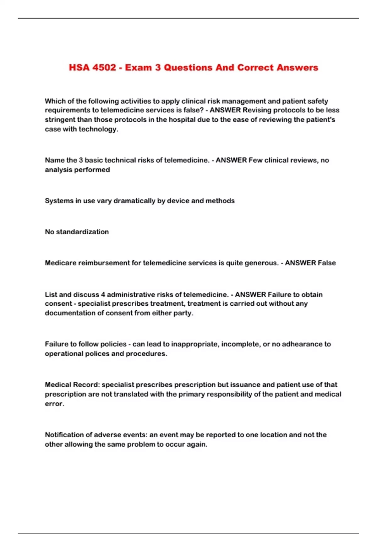 HSA 4502 - Exam 3 Questions And Correct Answers