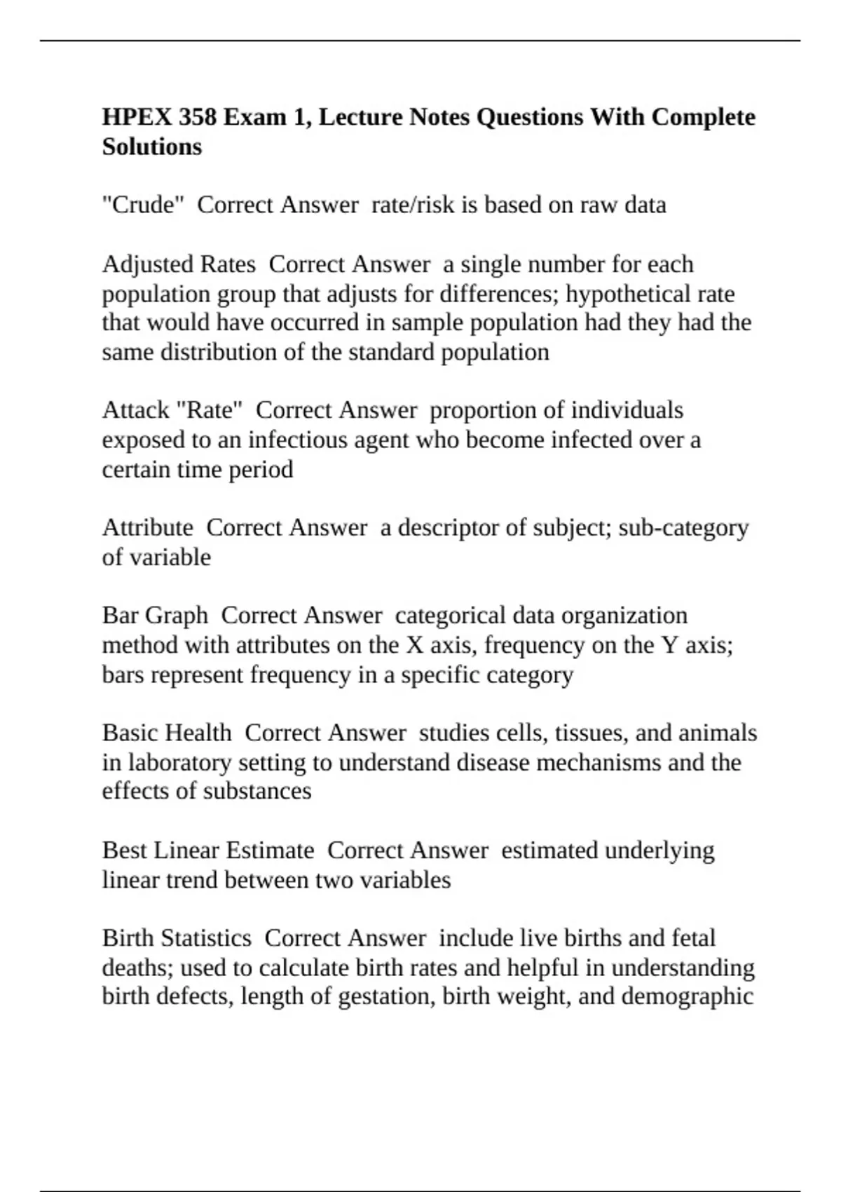 HPEX 358 Exam 1, Lecture Notes Questions With Complete