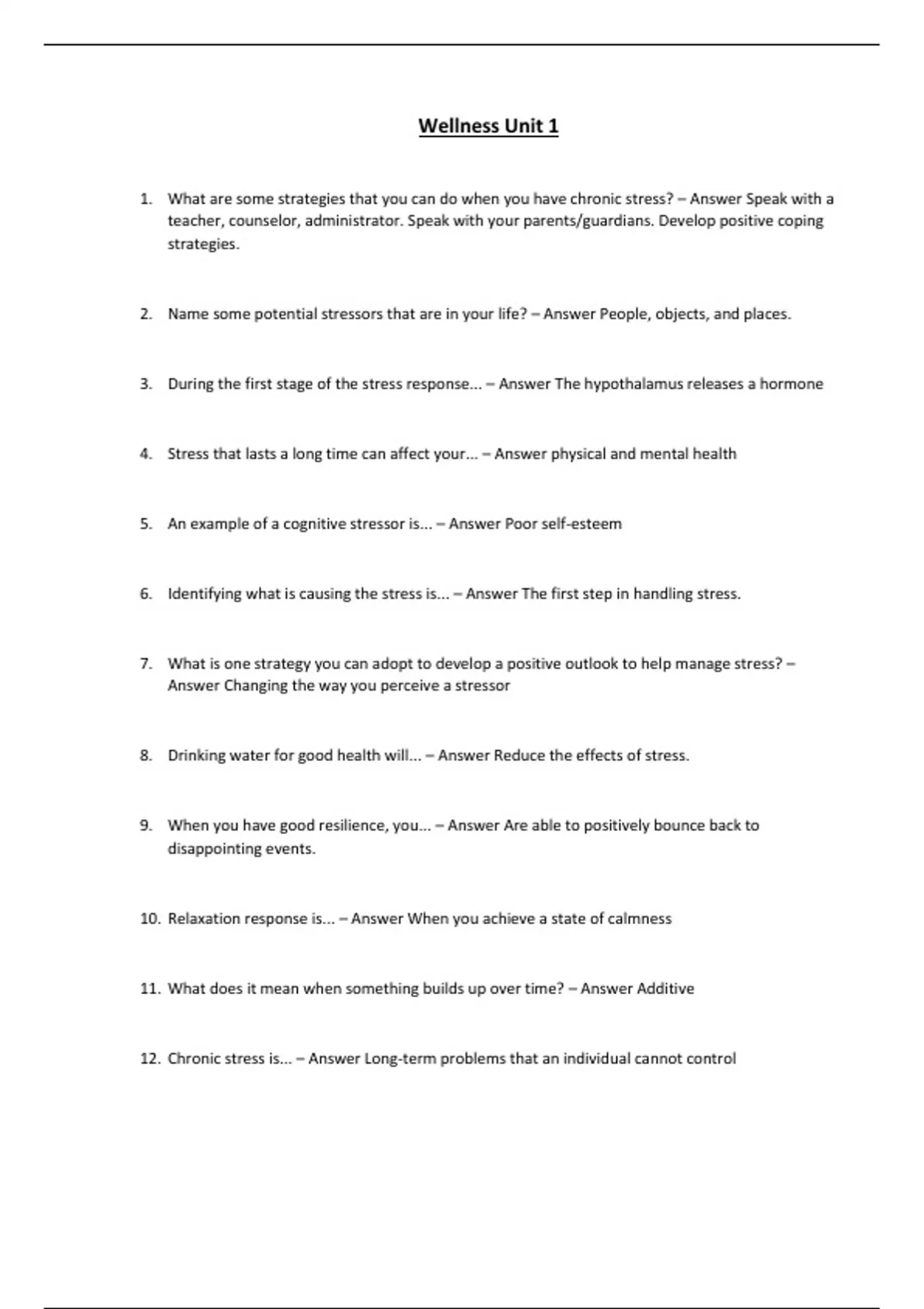 2. Name some potential stressors that are in your life? – Answer People, objects, and places.