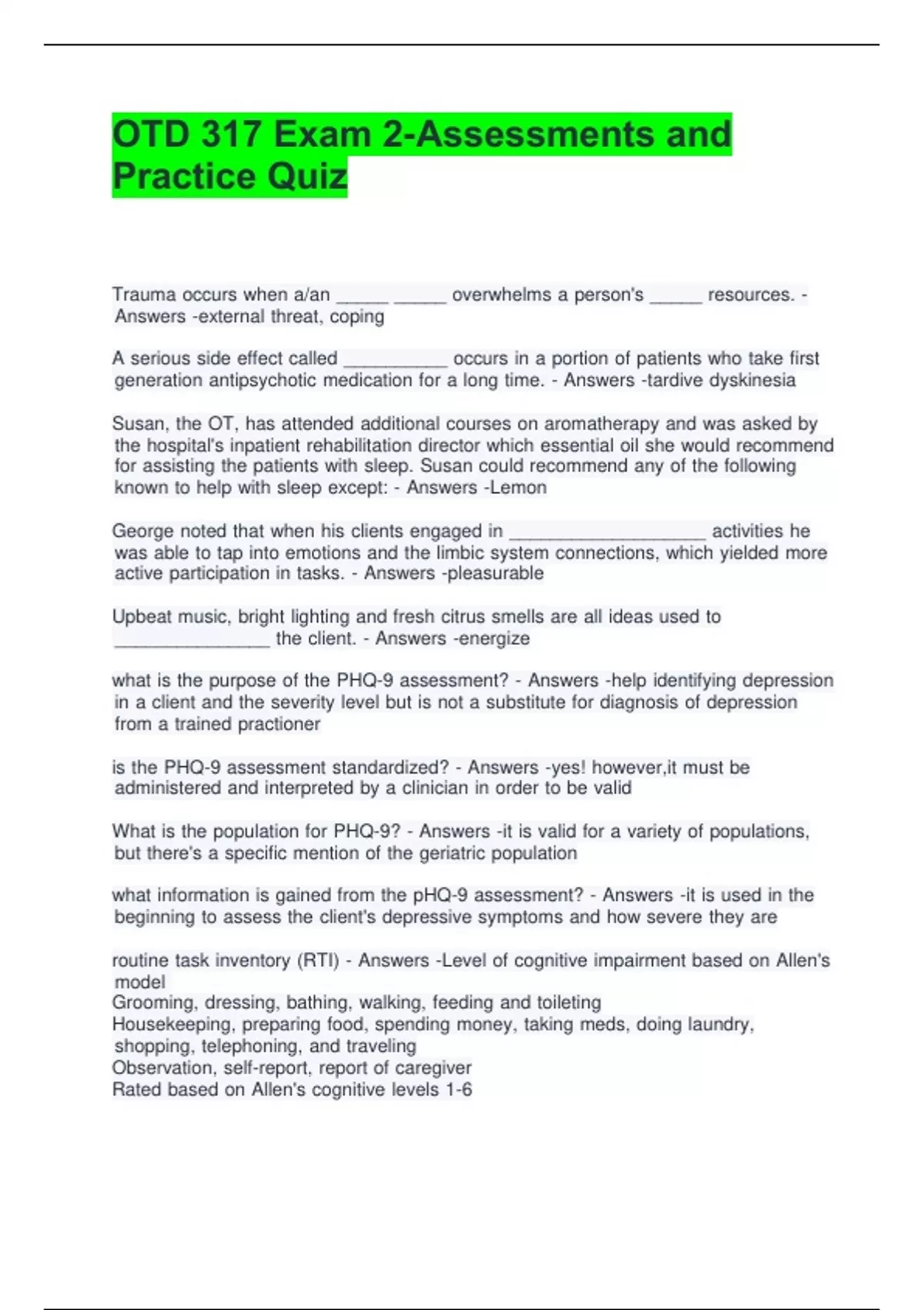 OTD 317 Exam 2-Assessments and