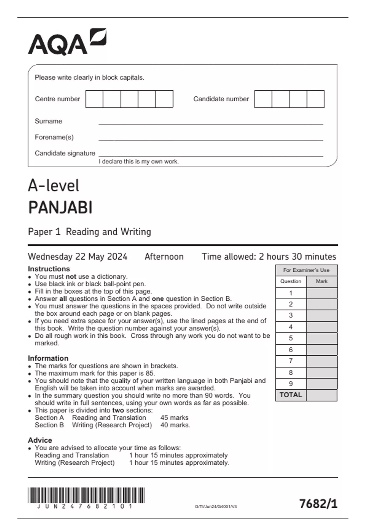 Wednesday 22 May 2024 Afternoon Time allowed: 2 hours 30 minutes