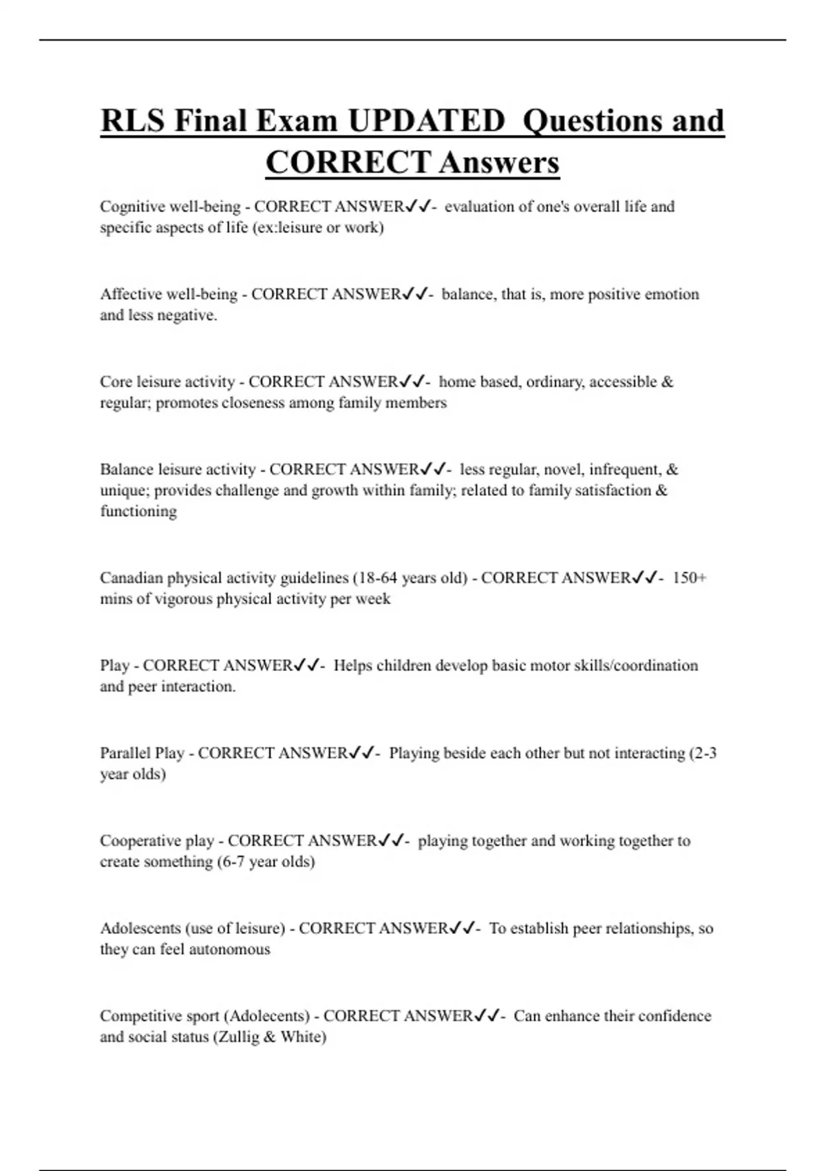 Leisure as recreational activity - CORRECT ANSWER✔✔- Anything from video gaming to