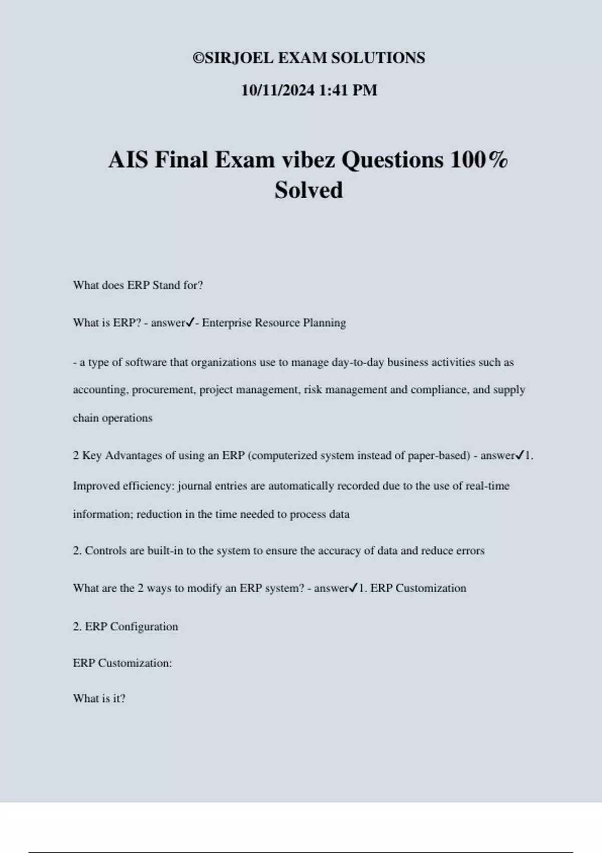 2 Key Advantages of using an ERP (computerized system instead of paper-based) - answer✔1.