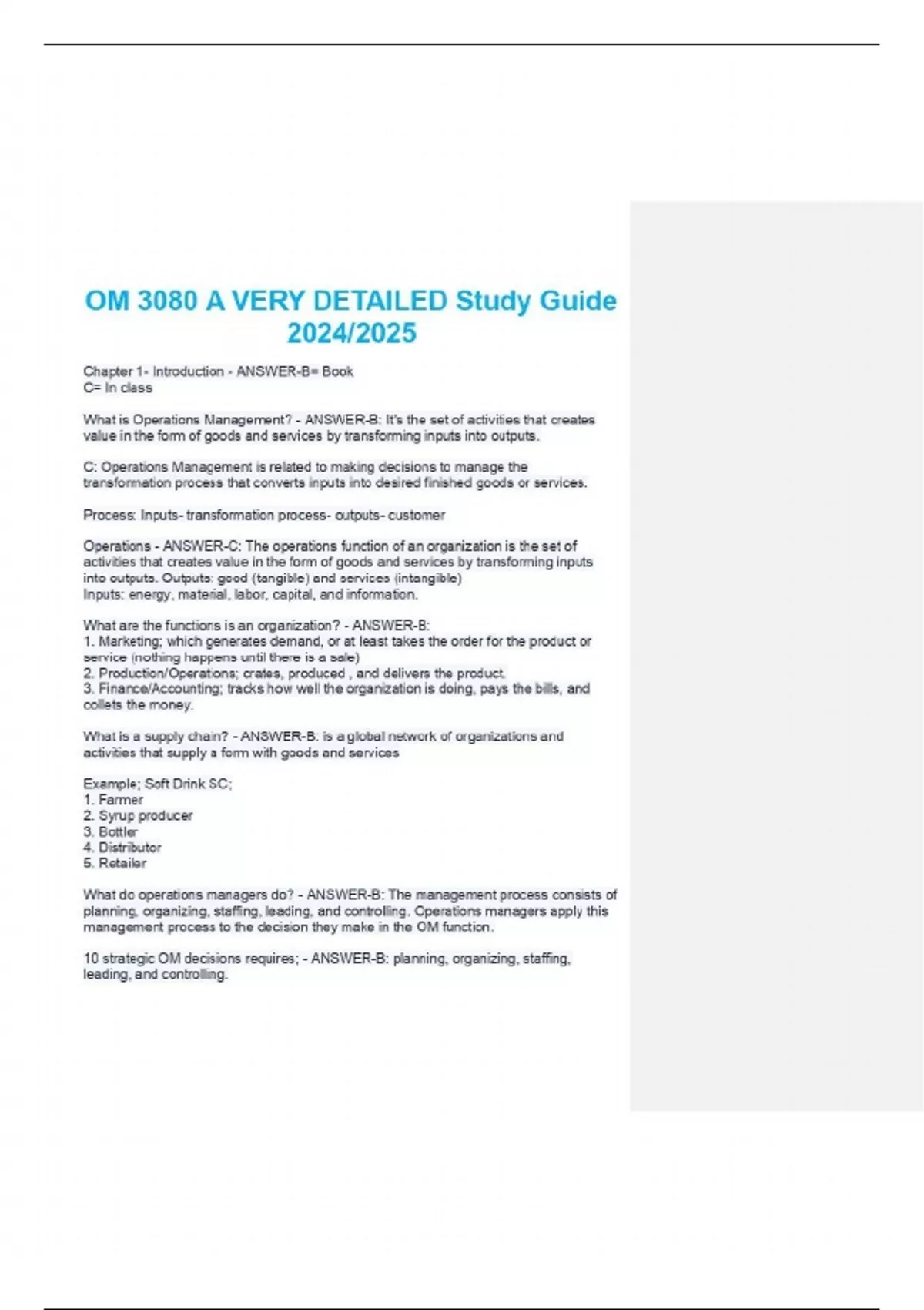 OM 3080 A VERY DETAILED Study Guide 2024/2025