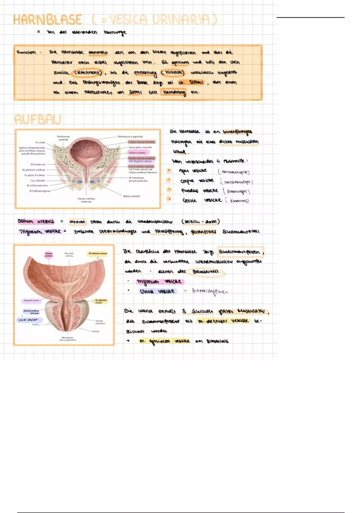 Diese Zusammenfassung beinhaltet die Anatomie der Harnblase: - Aufbau - Funktion - Harnblasenentleerung (Miktion) - Lagebeziehung - Gefäßversorgung - Innervation - Histologie
