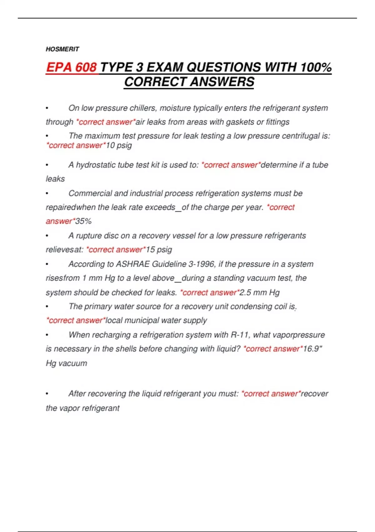 EPA 608 TYPE 3 EXAM QUESTIONS WITH 100%