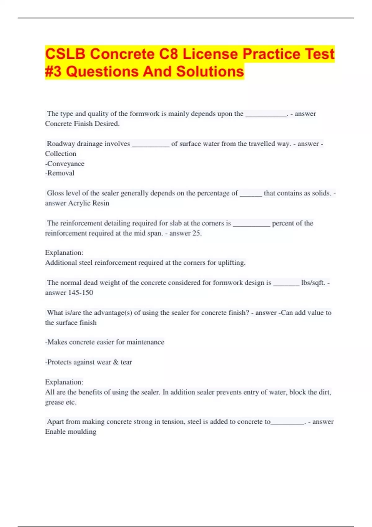 CSLB Concrete C8 License Practice Test #3 Questions And Solutions