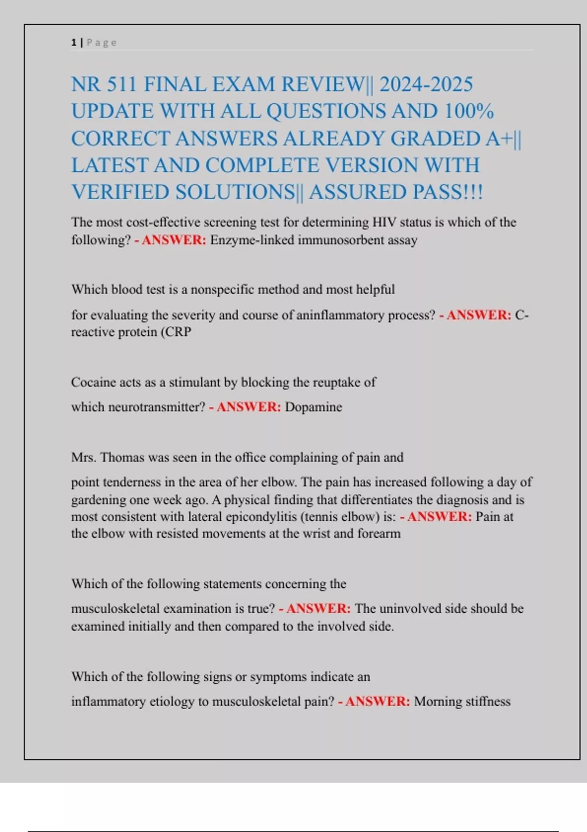 NR 511 FINAL EXAM REVIEW|| 2024-2025