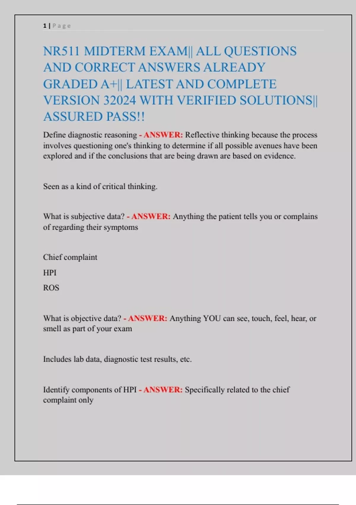 NR511 MIDTERM EXAM|| ALL QUESTIONS