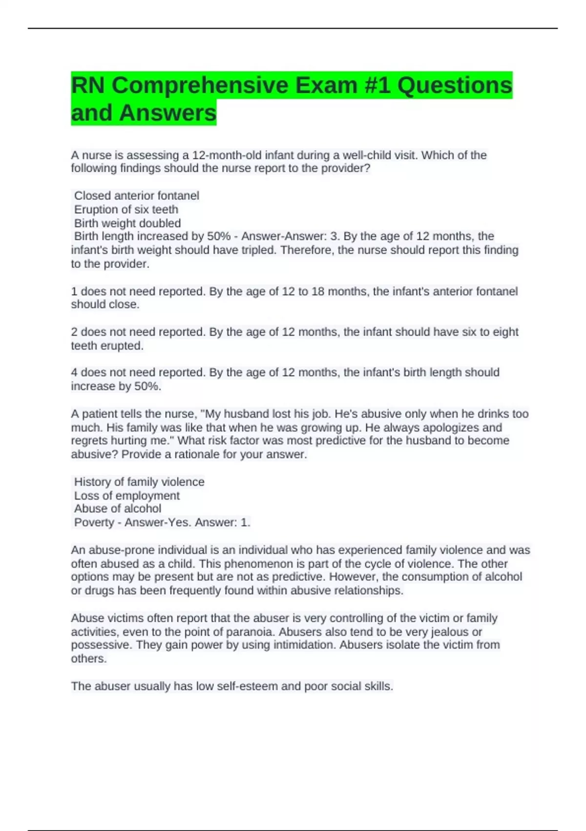 Birth length increased by 50% - Answer-Answer: 3. By the age of 12 months, the