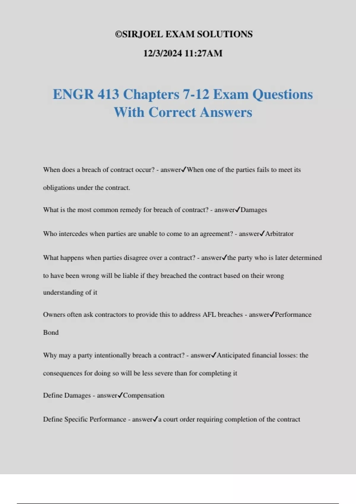 Define Specific Performance - answer✔a court order requiring completion of the contract