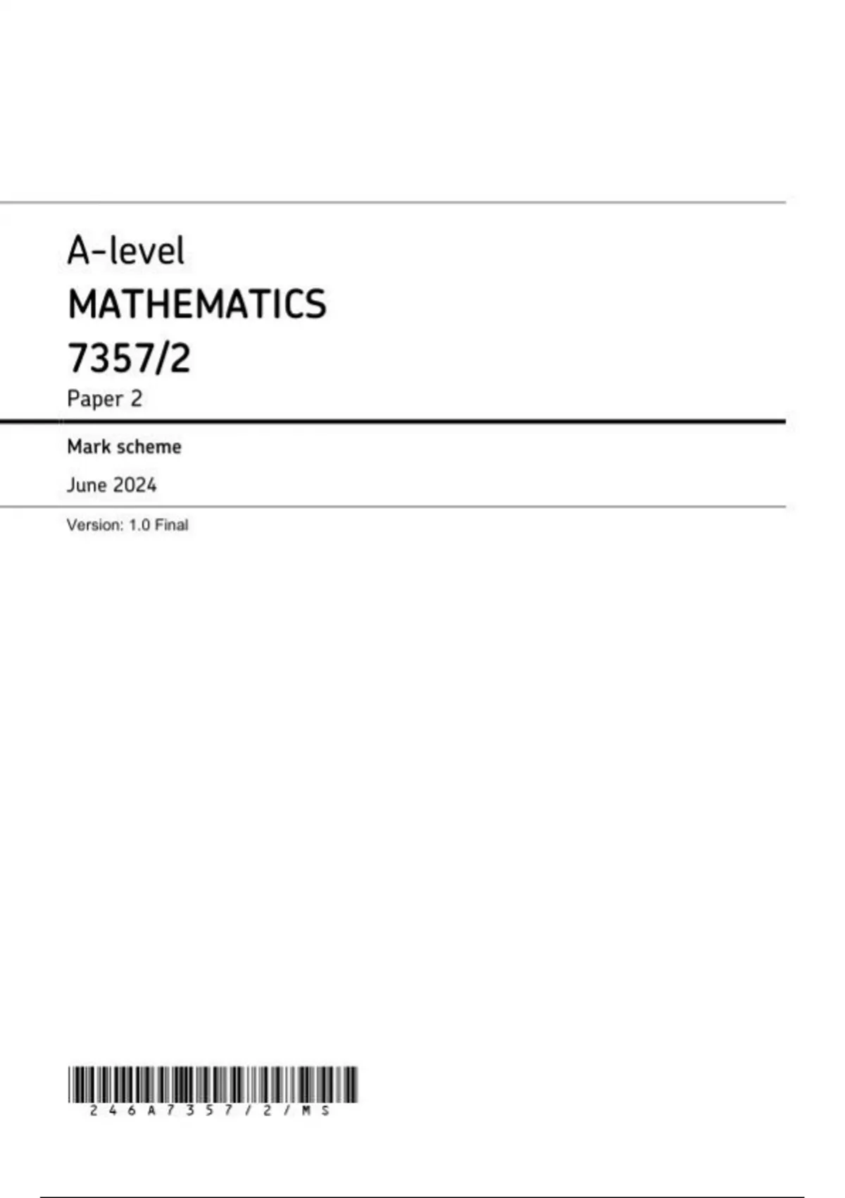 AQA A-level MATHEMATICS 7357/2 Paper 2 Mark scheme June 2024