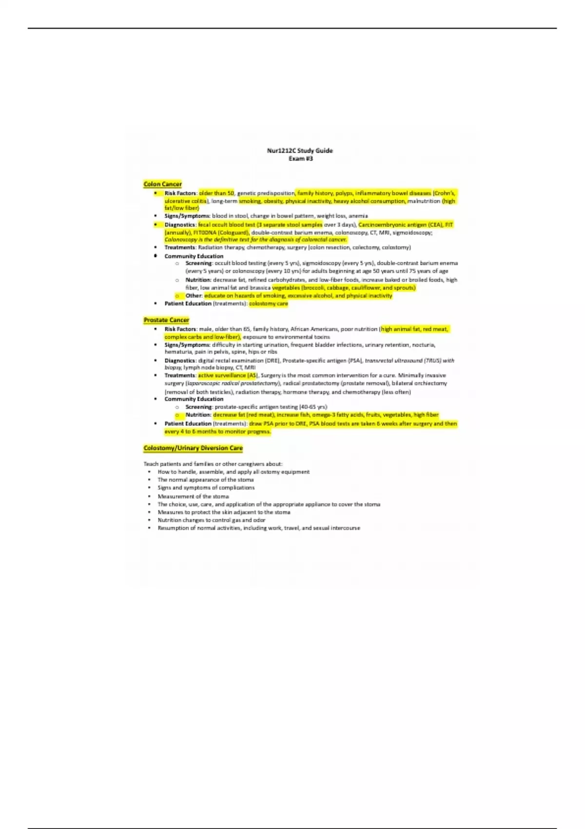 Risk Factors: male, older than 65, family history, African Americans, poor nutrition (high animal fat, red meat,