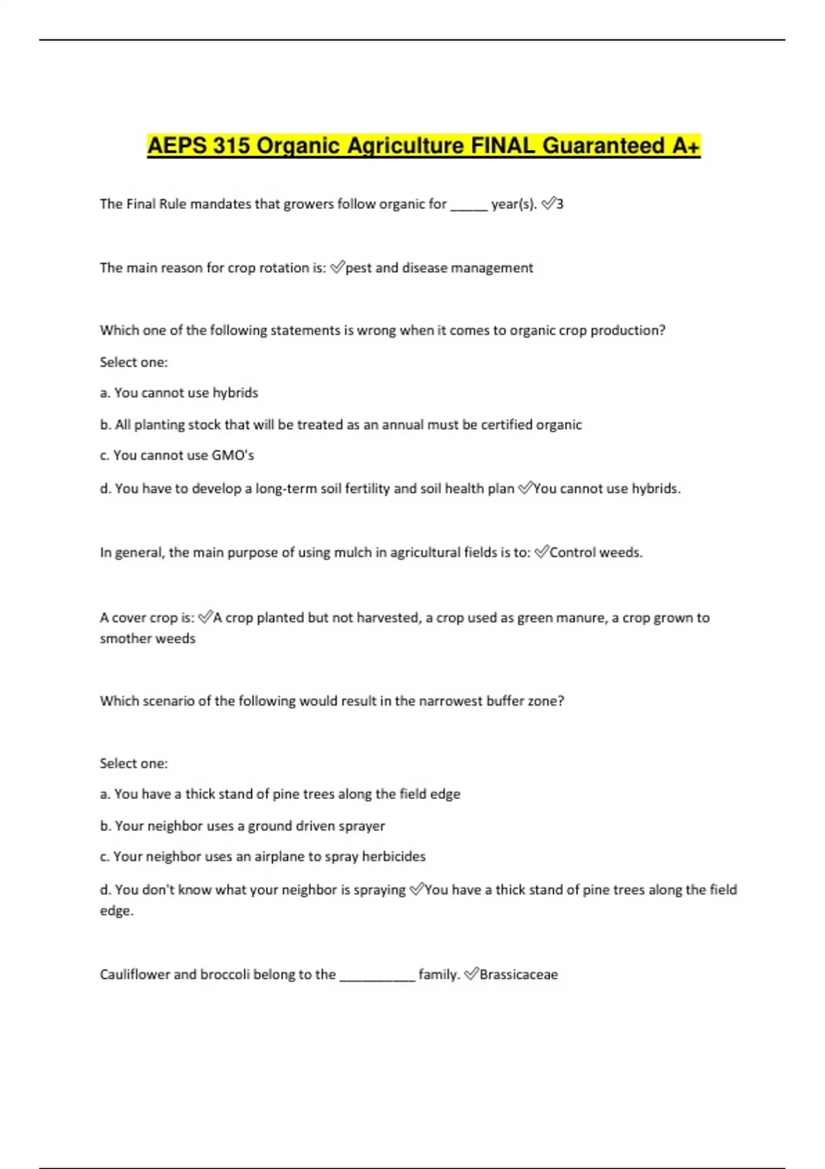 The Final Rule mandates that growers follow organic for _____ year(s). ✅3