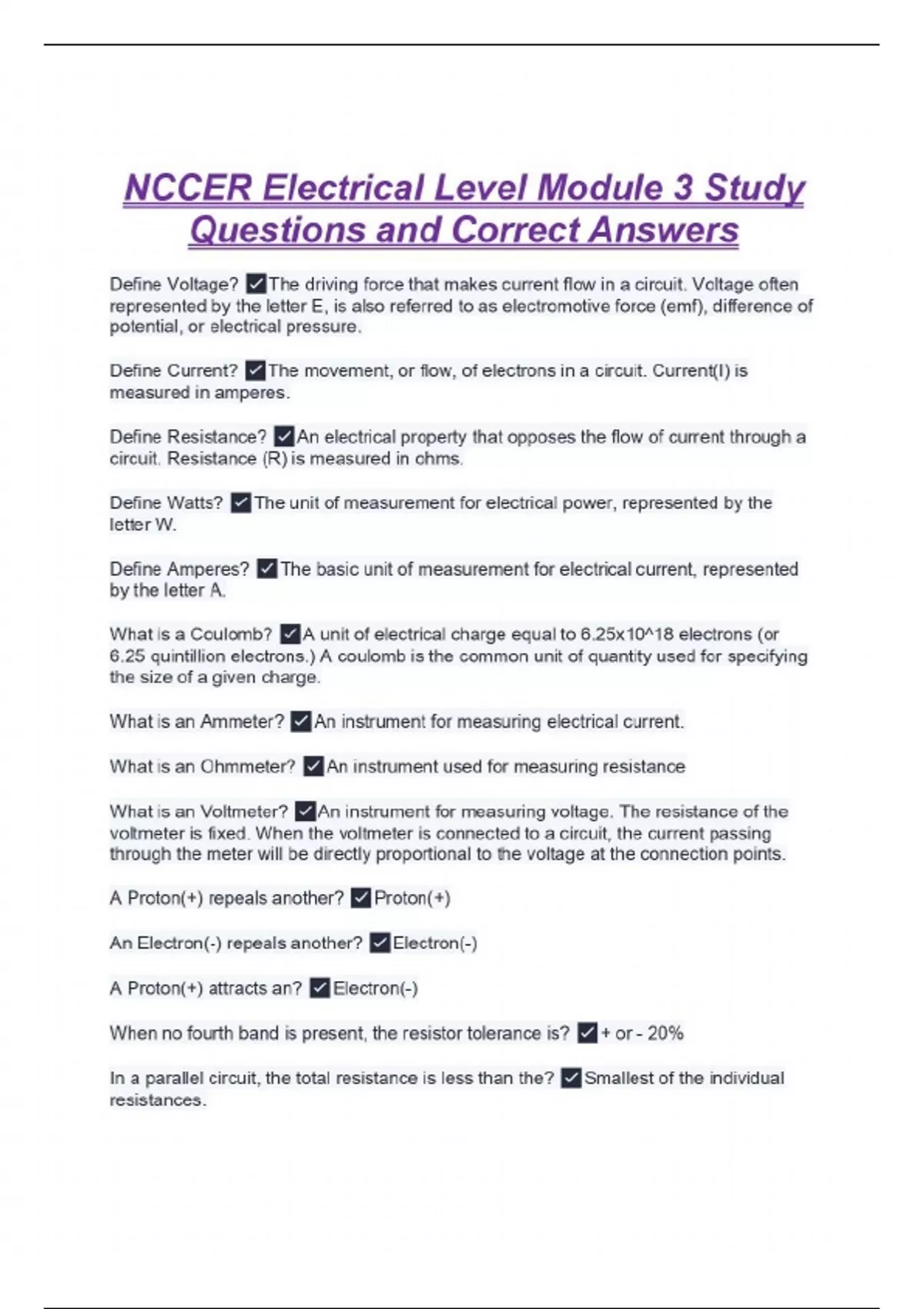 NCCER Electrical Level Module 3 Study Questions and Correct Answers