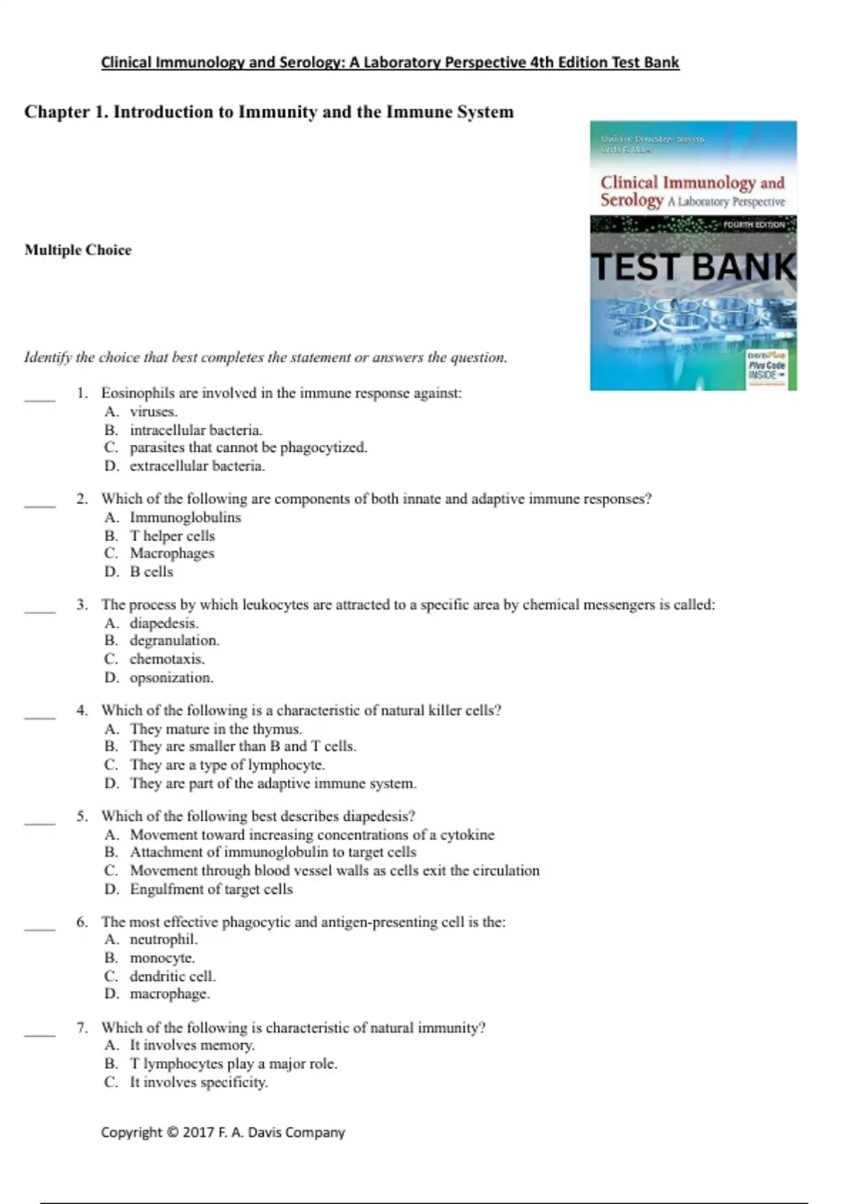 , Clinical Immunology and Serology: A Laboratory Perspective 4th Edition Test Bank