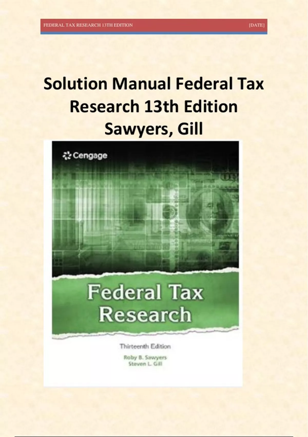 Solution Manual Federal Tax Research 13th Edition Sawyers, Gill Solution Manual Federal Tax Research 13th Edition Sawyers, Gill