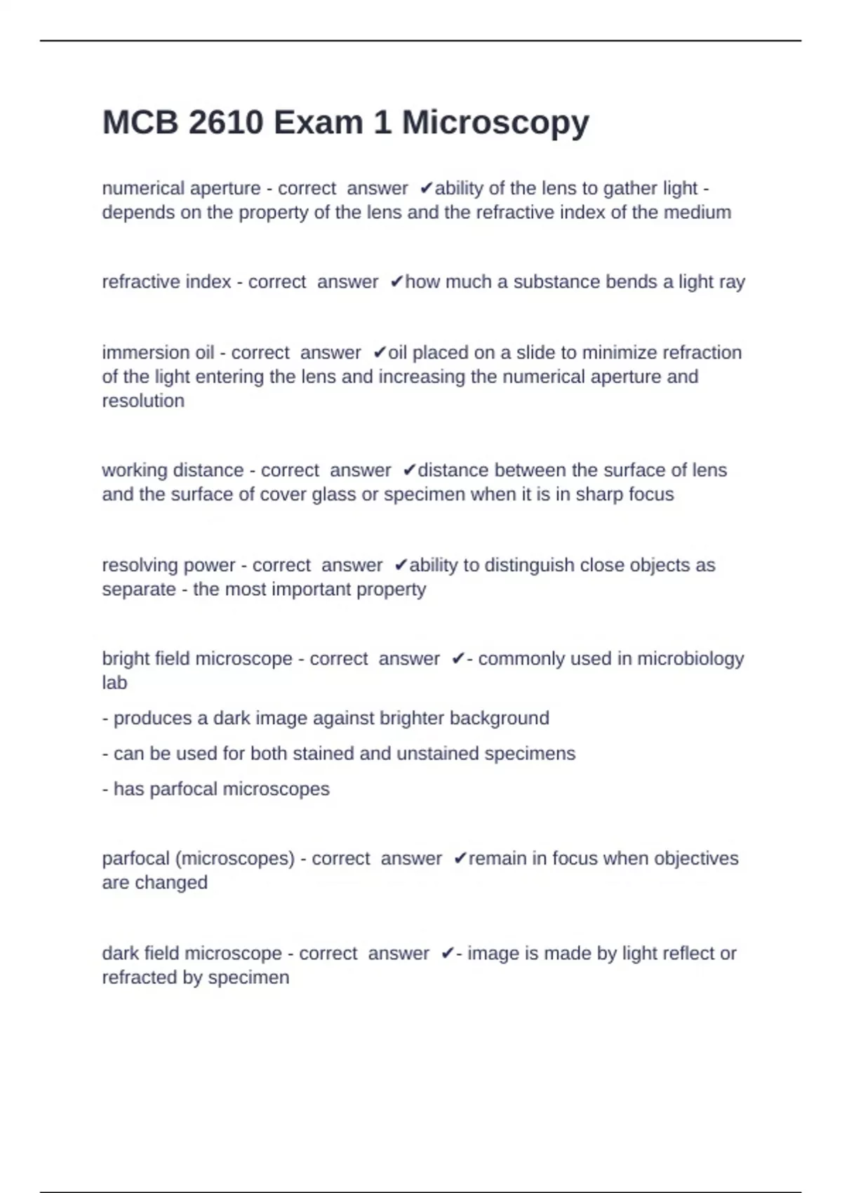 immersion oil - correct answer ✔oil placed on a slide to minimize refraction